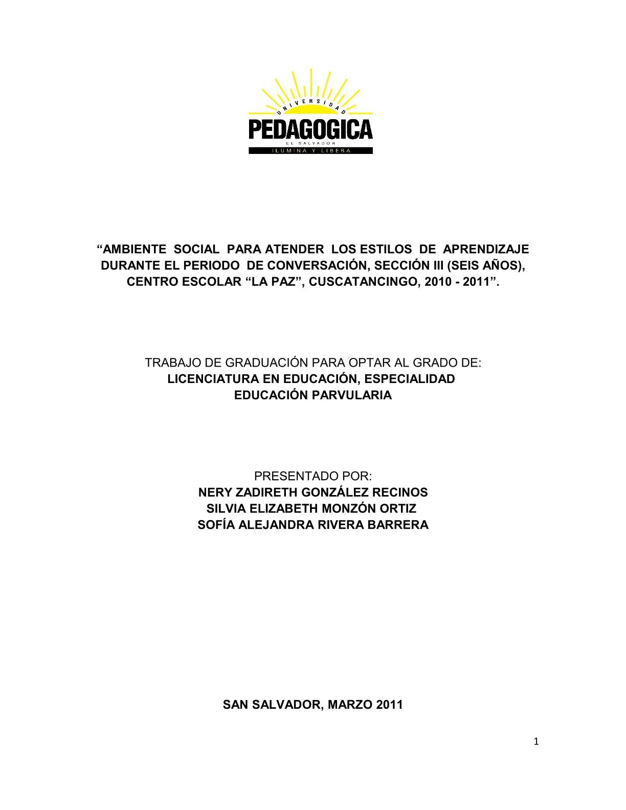 Ambiente educativo para “convivencia” Sección III ...