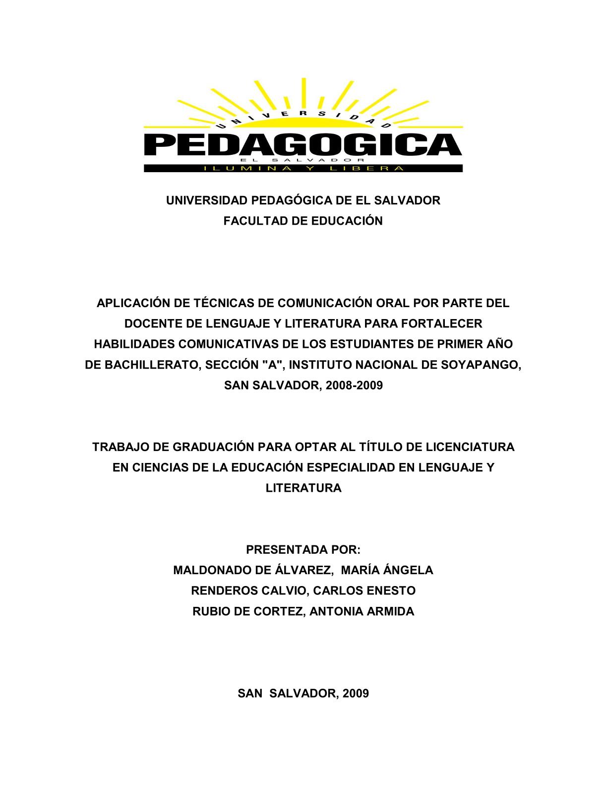 Maldonado de Álvarez, María ÁngelaRenderos Calvio, Carlos Enesto