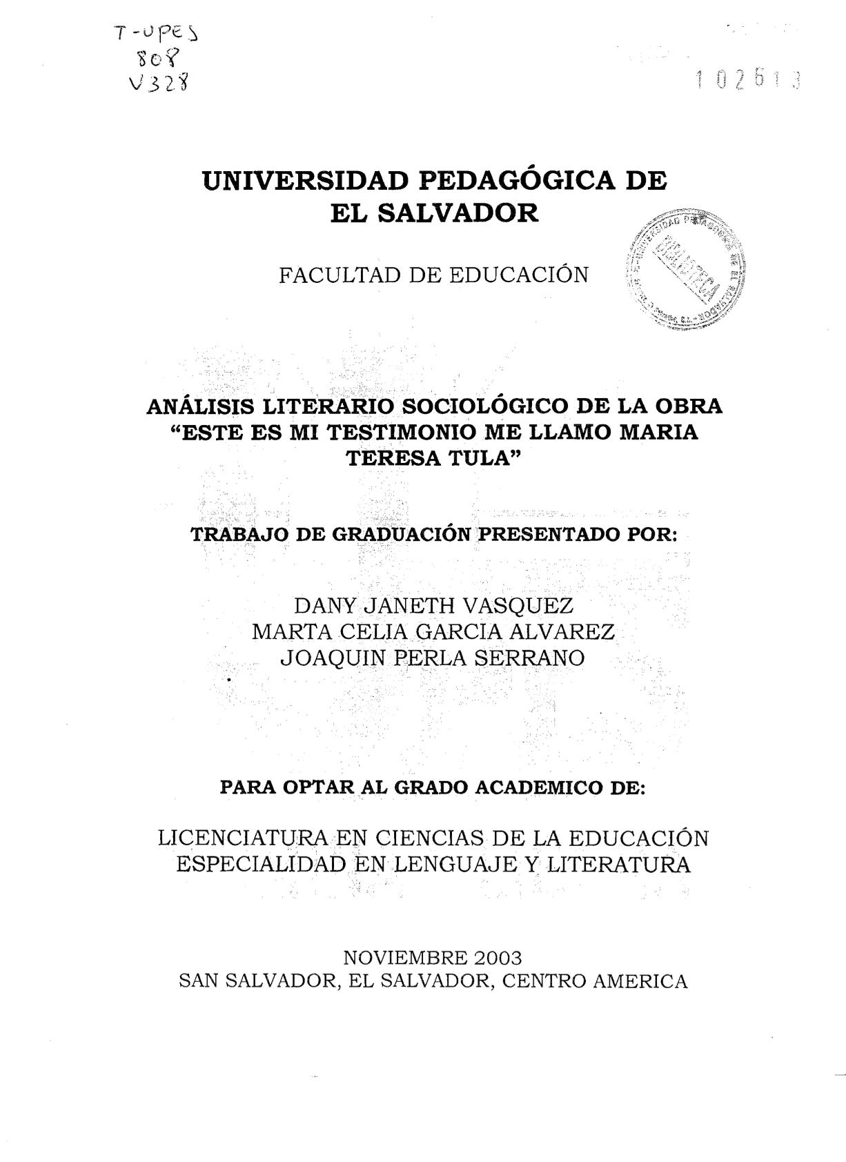 Vásquez, Dany JanethGarcía Álvarez, Marta Celia